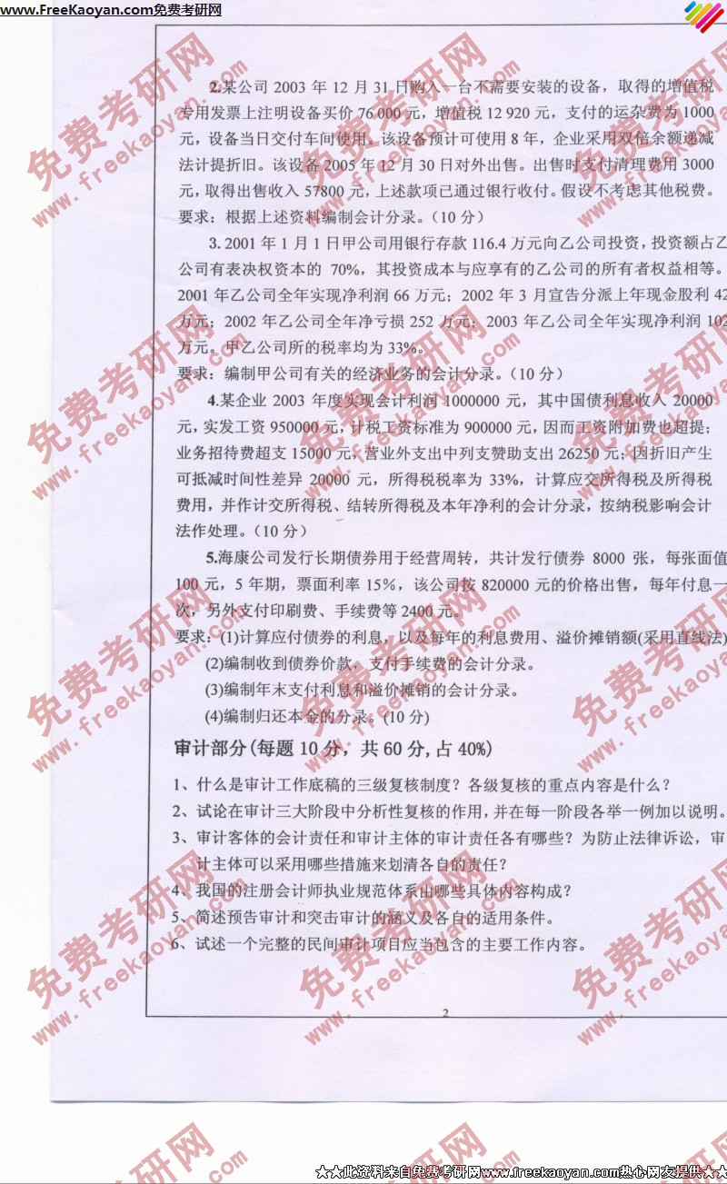相关话题/考研真题 西南大学 审计 会计