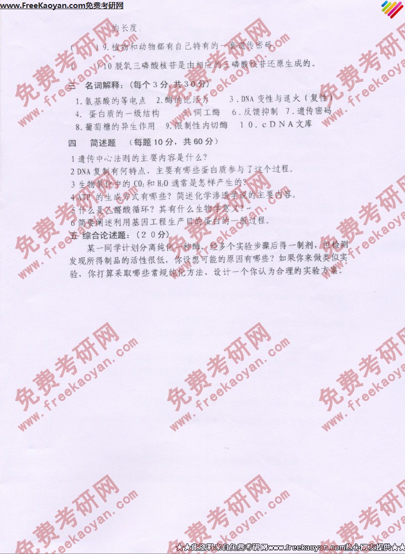 相关话题/考研真题 西南大学 生物化学 基础