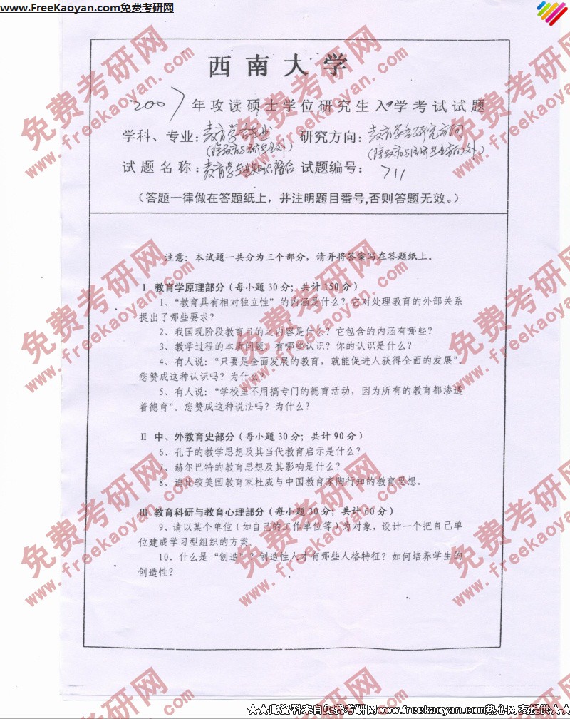 相关话题/考研真题 西南大学 教育学 综合 专业知识