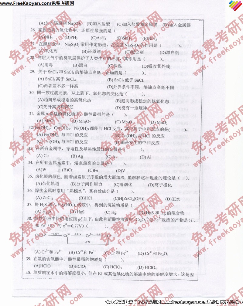 专业课考研经验 本站小编 FreeKaoyan 2018-01-23西南大学2007年考研真题-化学