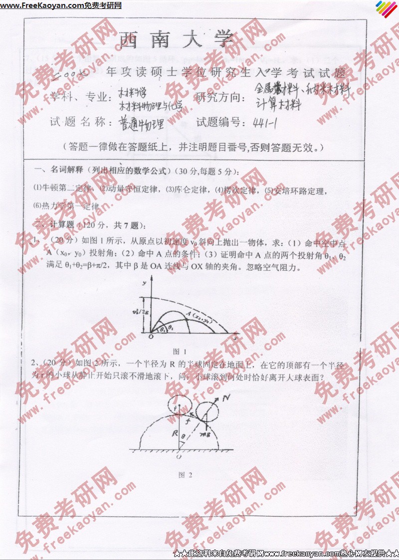 专业课考研经验 本站小编 FreeKaoyan 2018-01-23西南大学2007年考研真题-化学