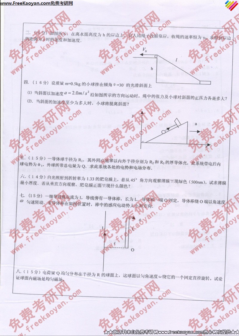 专业课考研经验 本站小编 FreeKaoyan 2018-01-23西南大学2007年考研真题-普通物理