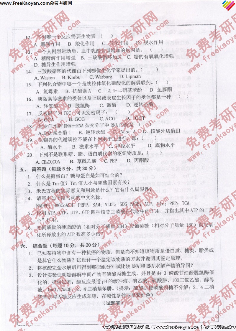 专业课考研经验 本站小编 FreeKaoyan 2018-01-23西南大学2007年考研真题-普通化学