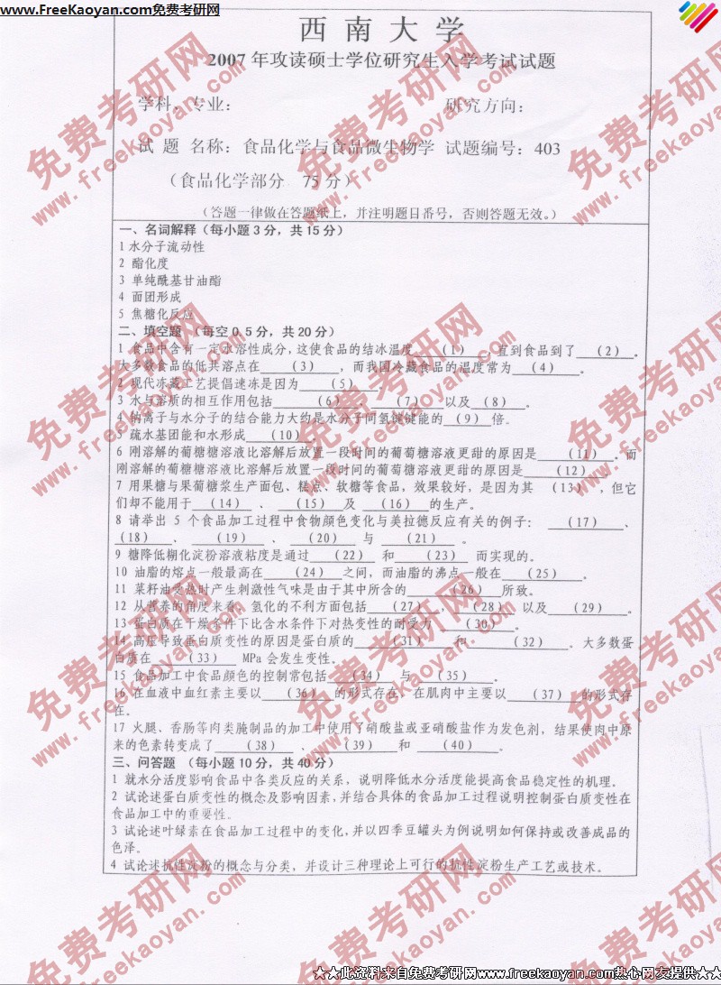 相关话题/考研真题 西南大学 食品化学 生物学 食品