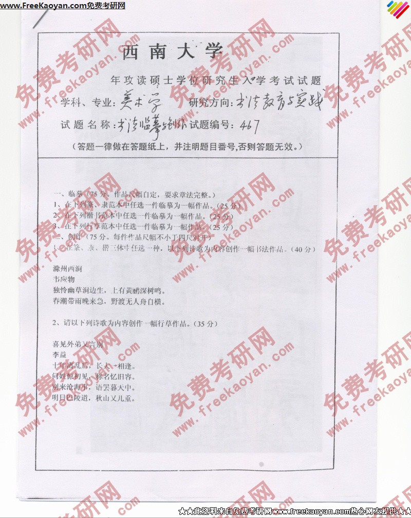 专业课考研经验 本站小编 FreeKaoyan 2018-01-23西南大学2007年考研真题-社会学