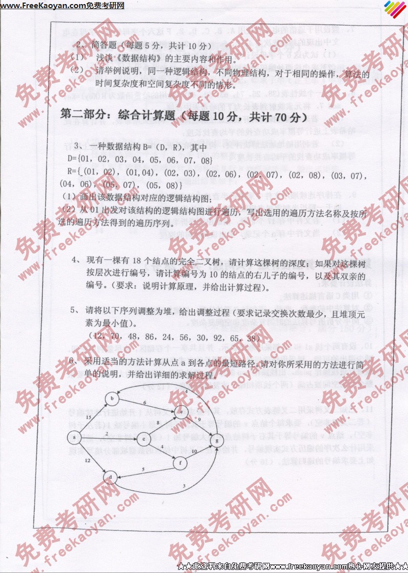 西南大学2007年考研真题-数据结构(含C)(2)
