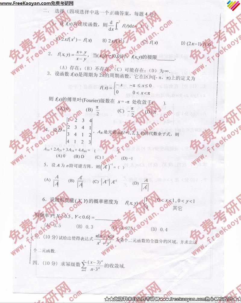 专业课考研经验 本站小编 FreeKaoyan 2018-01-23西南大学2007年考研真题-数学