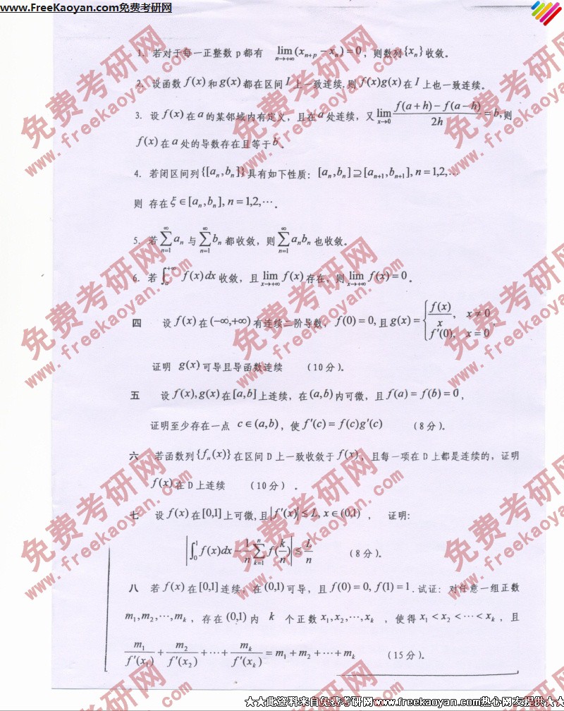 专业课考研经验 本站小编 FreeKaoyan 2018-01-23西南大学2007年考研真题-数学