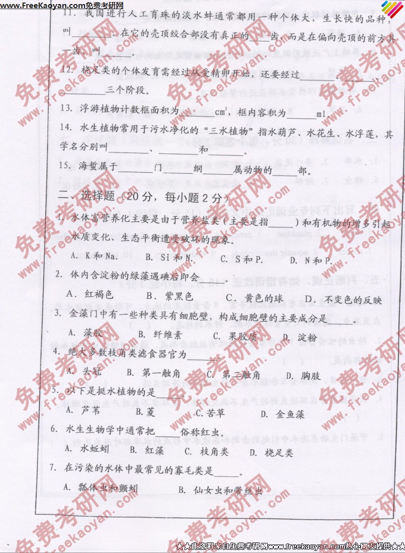 专业课考研经验 本站小编 FreeKaoyan 2018-01-23西南大学2007年考研真题-食品化学与食品生物学