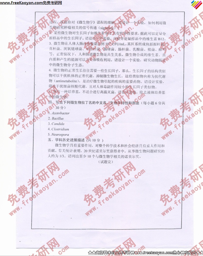 专业课考研经验 本站小编 FreeKaoyan 2018-01-23西南大学2007年考研真题-食品化学与食品生物学