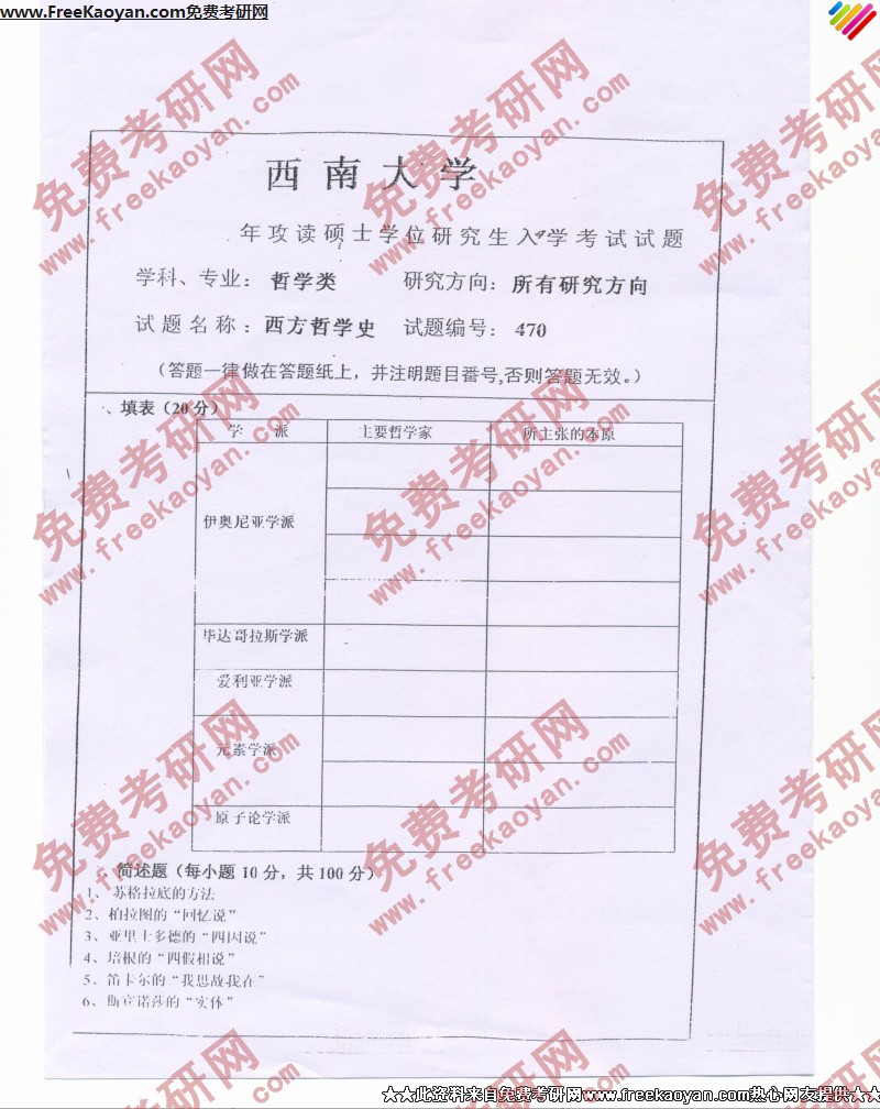 专业课考研经验 本站小编 FreeKaoyan 2018-01-23西南大学2007年考研真题-土壤侵蚀原理