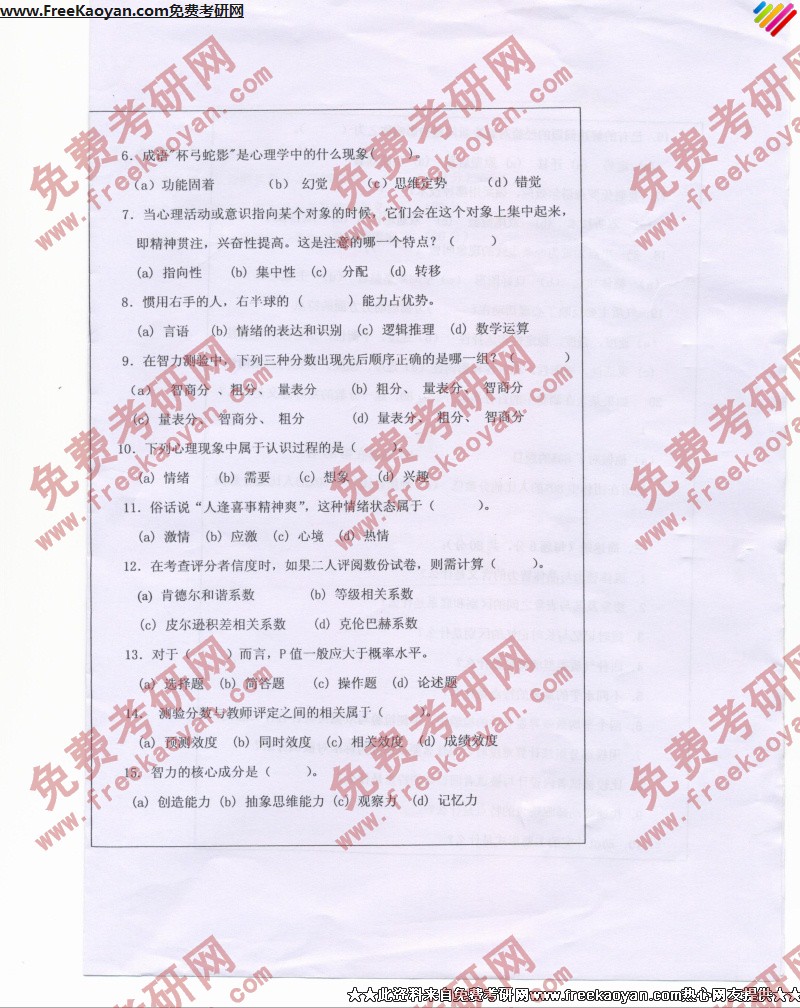 相关话题/考研真题 西南大学 心理学 综合 专业基础