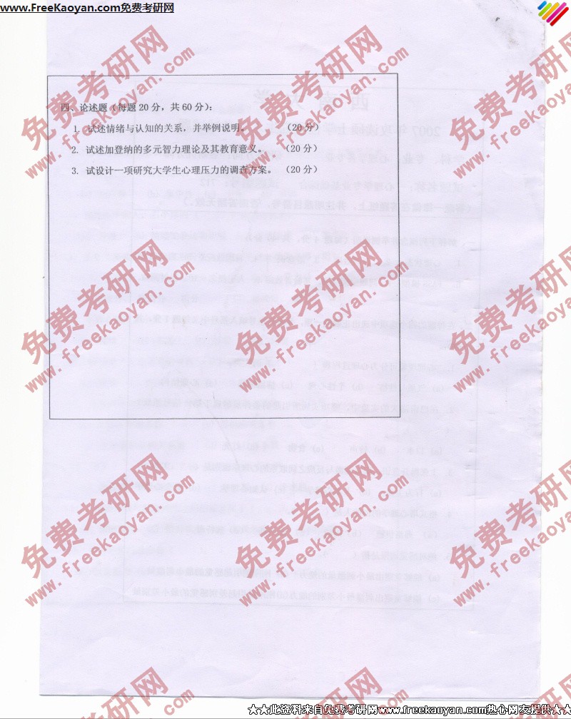 西南大学2007年考研真题-心理学专业基础综合(4)