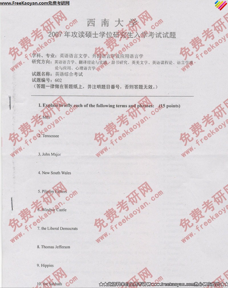专业课考研经验 本站小编 FreeKaoyan 2018-01-23西南大学2007年考研真题-新闻学