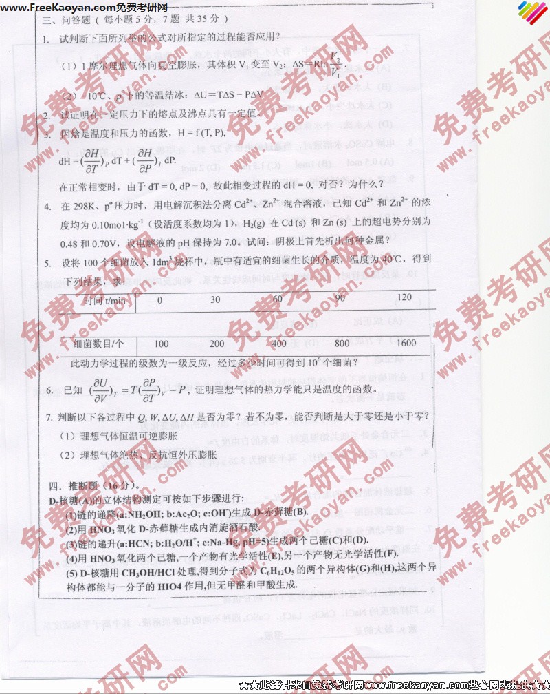 相关话题/考研真题 西南大学 物理化学 有机化学