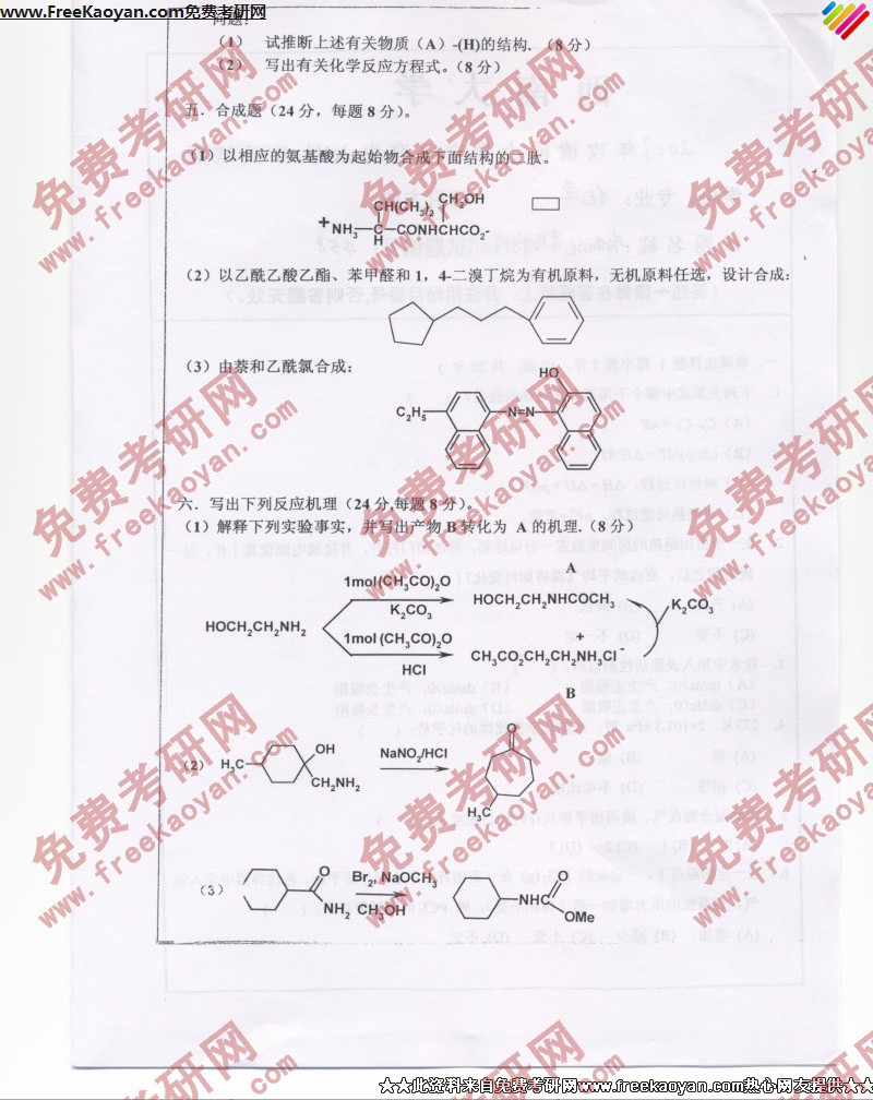 相关话题/考研真题 西南大学 物理化学 有机化学