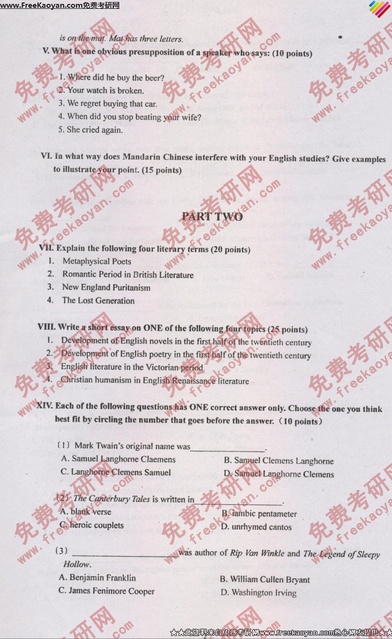 专业课考研经验 本站小编 FreeKaoyan 2018-01-23西南大学2007年考研真题-英语综合考试