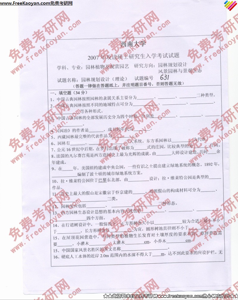 专业课考研经验 本站小编 FreeKaoyan 2018-01-23西南大学2007年考研真题-艺术理论与美术(含书法)史