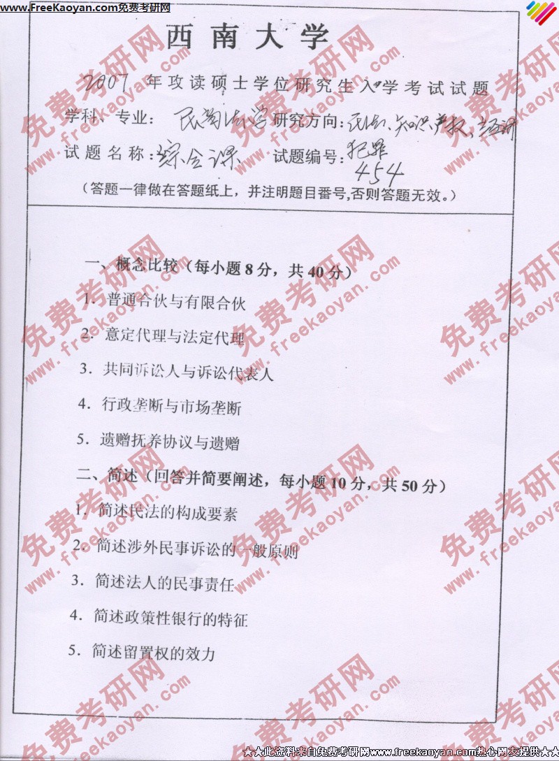 专业课考研经验 本站小编 FreeKaoyan 2018-01-23西南大学2007年考研真题-专业综合