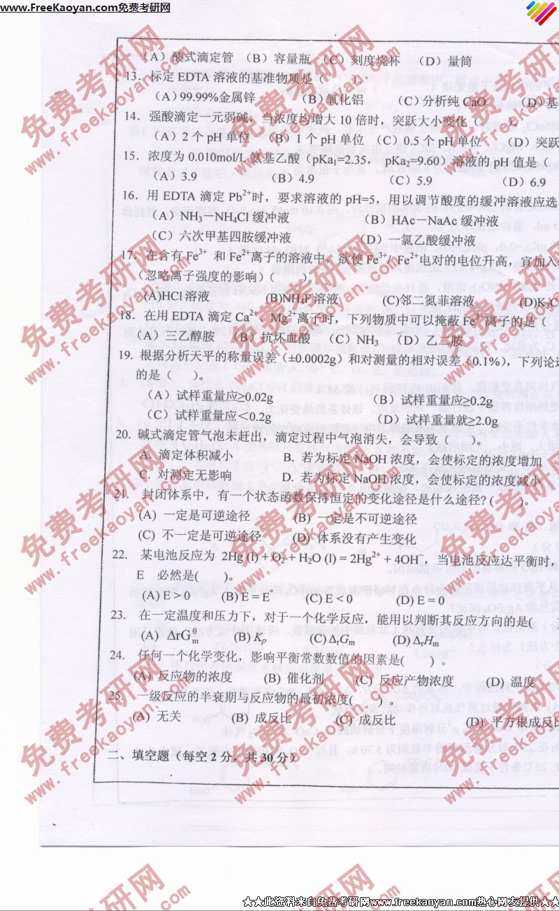 专业课考研经验 本站小编 FreeKaoyan 2018-01-23西南大学2007年考研真题-有机化学及物理化学