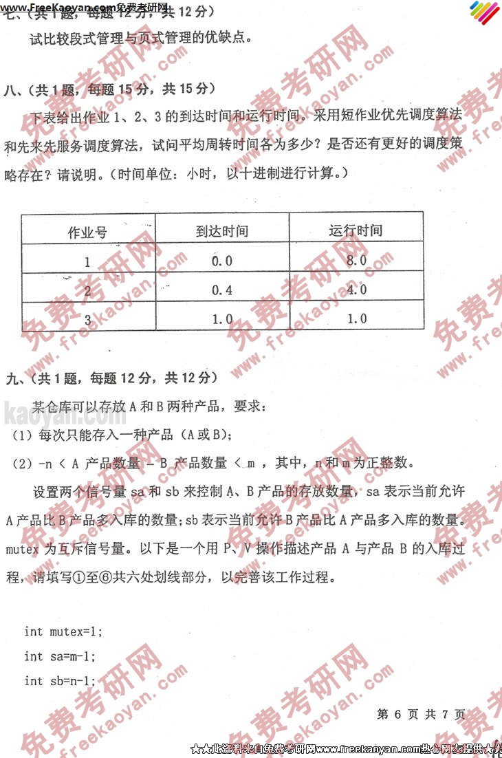 云南大学2003年考研真题-数据结构与操作系统(6)