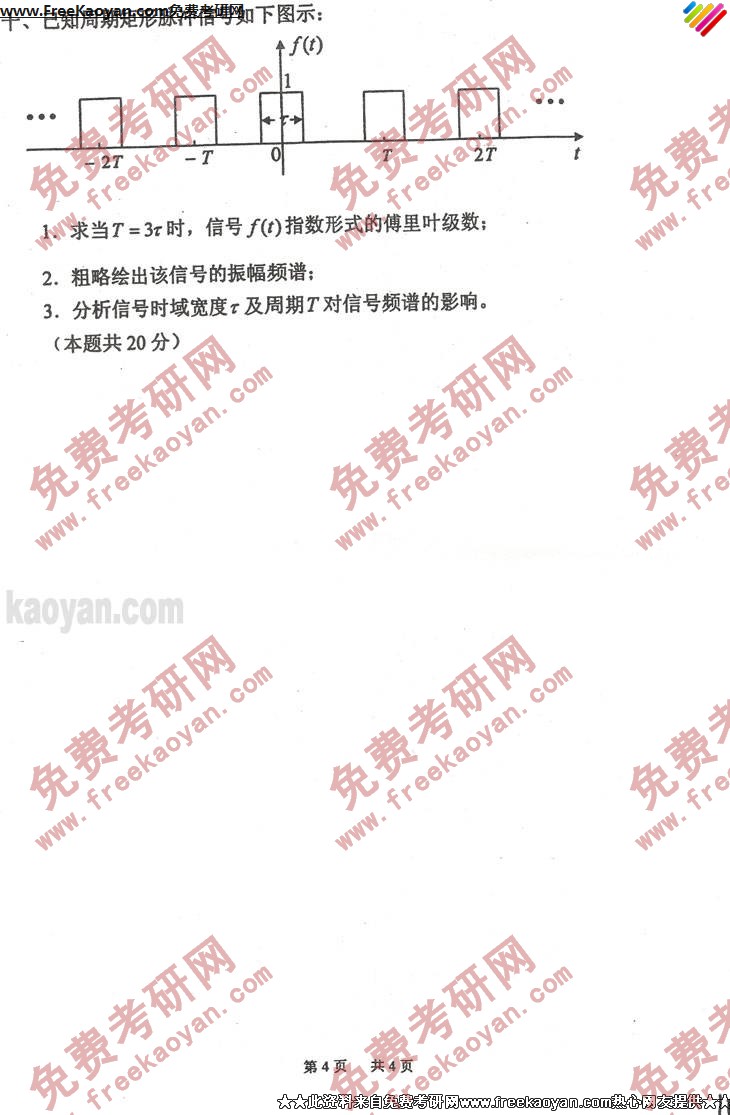 云南大学2003年考研真题-信号与系统(4)