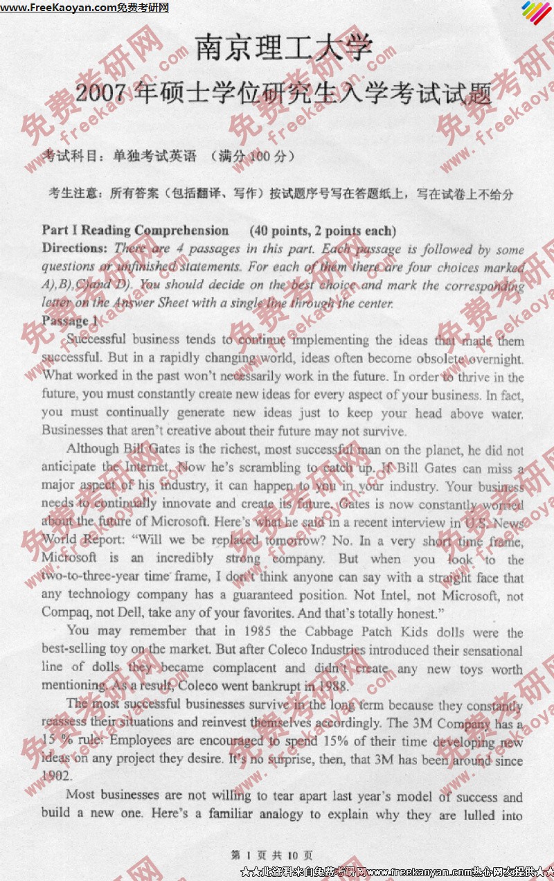 相关话题/考研真题 南京理工大学 英语 单独考试
