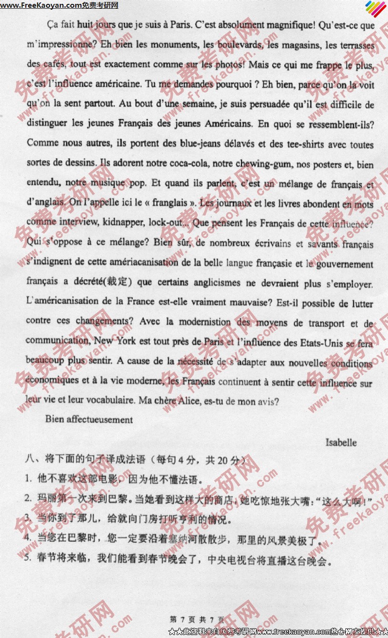 专业课考研经验 本站小编 FreeKaoyan 2018-01-23南京理工大学2007年考研真题-单独考试俄语