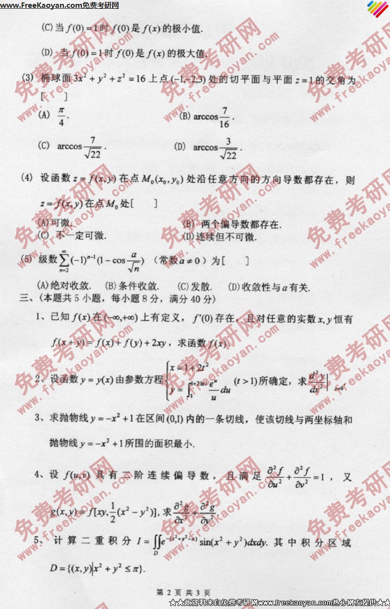 南京理工大学2007年考研真题-高等数学(2)