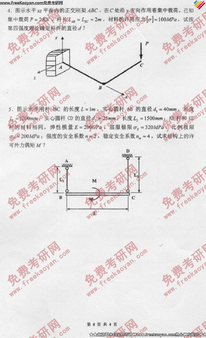 相关话题/南京理工大学 考研真题 工程力学