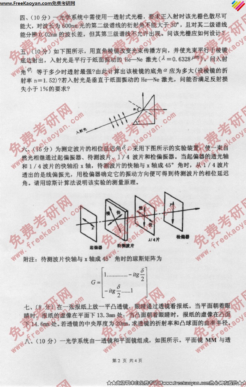 相关话题/南京理工大学 考研真题 光学工程