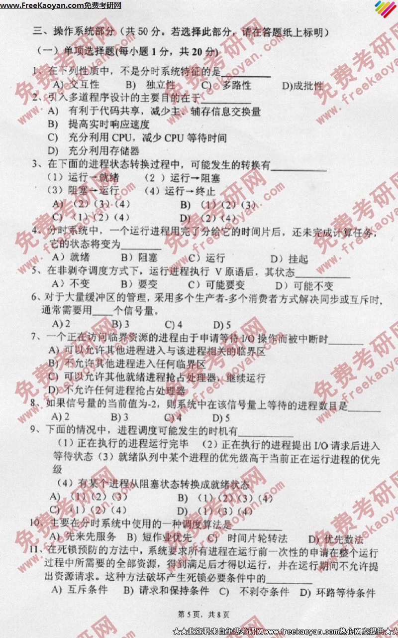 南京理工大学2007年考研真题-计算机专业基础(5)