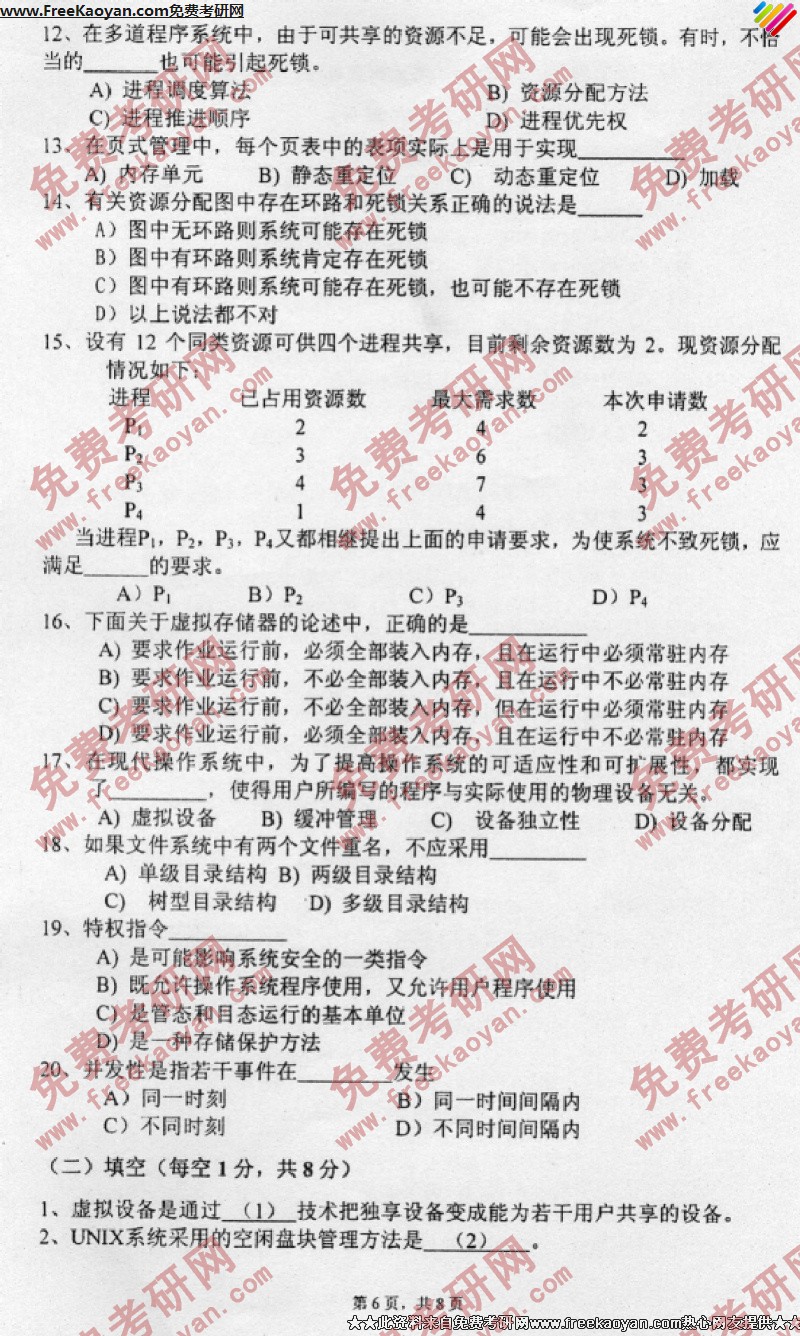 南京理工大学2007年考研真题-计算机专业基础(6)