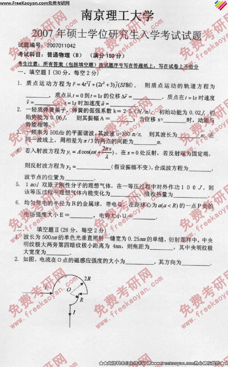 相关话题/南京理工大学 考研真题 普通物理