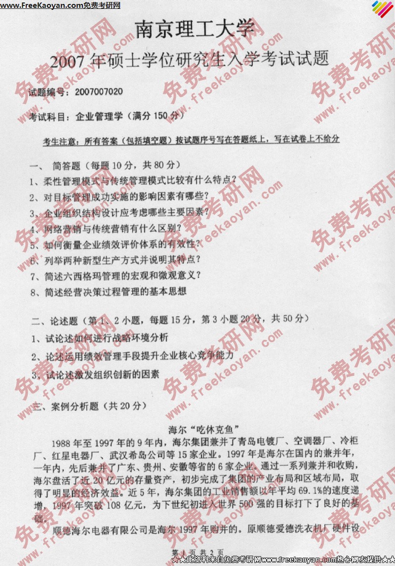 专业课考研经验 本站小编 FreeKaoyan 2018-01-23南京理工大学2007年考研真题-基础英语