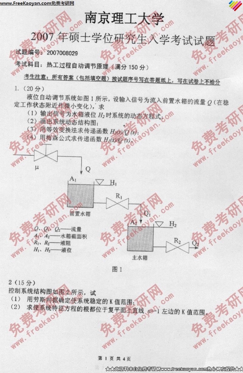南京理工大学2007年考研真题-热工过程自动调节原理