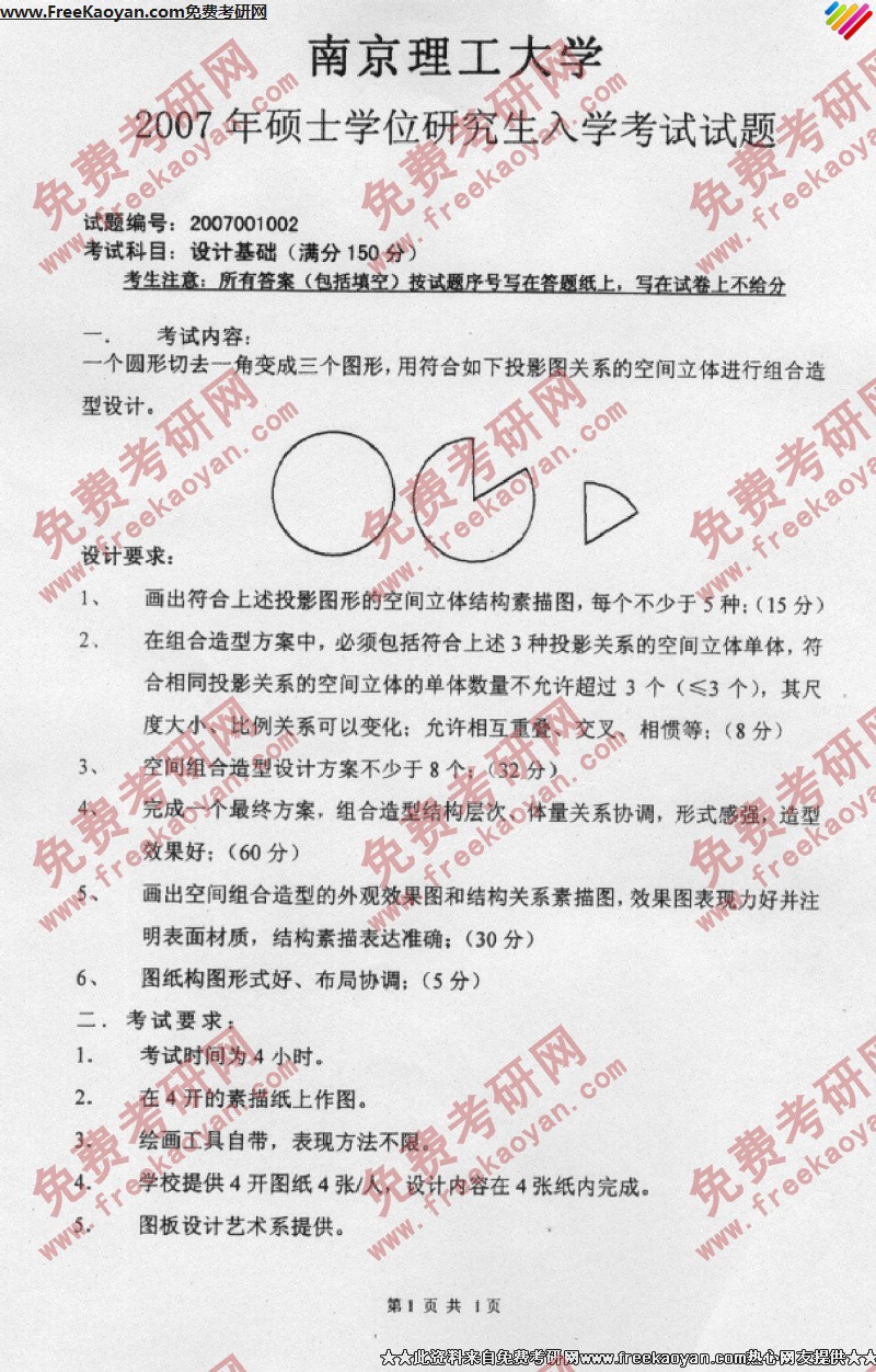 南京理工大学2007年考研真题-设计基础