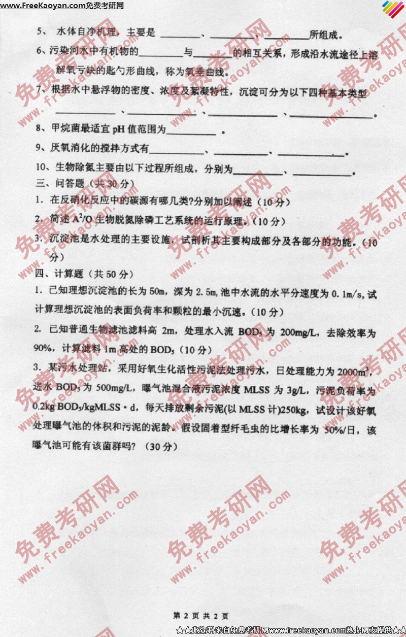 南京理工大学2007年考研真题-水污染控制工程(2)