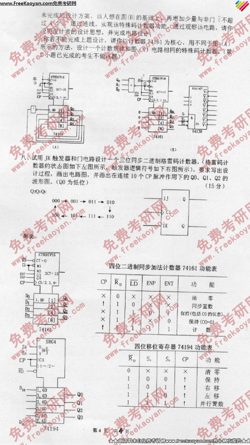 南京理工大学2007年考研真题-信号系统与数字电路(4)