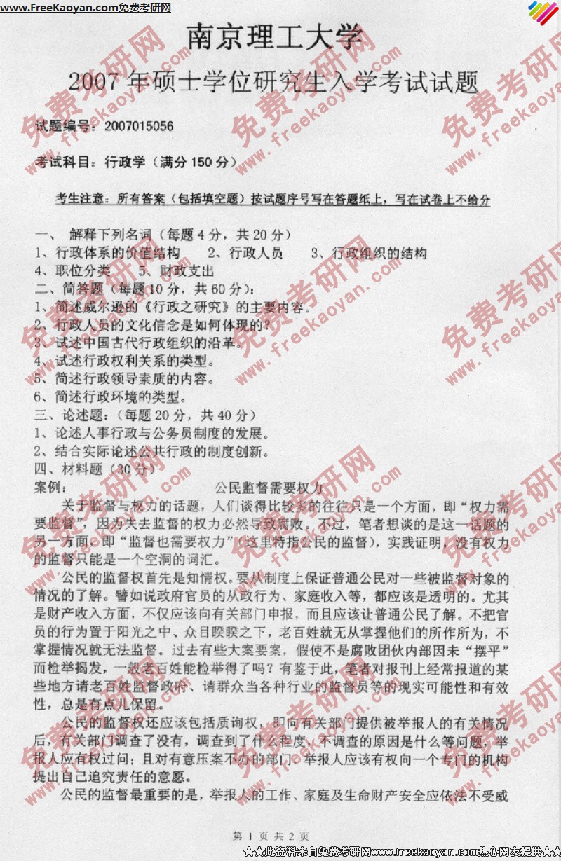 专业课考研经验 本站小编 FreeKaoyan 2018-01-23南京理工大学2007年考研真题-社会学理论