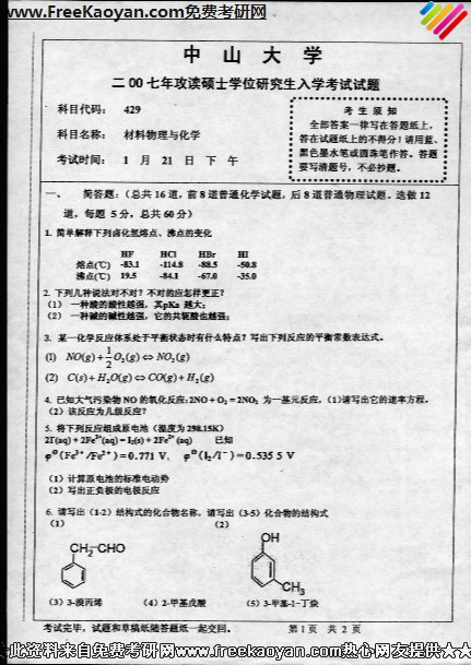 专业课考研经验 本站小编 FreeKaoyan 2018-01-23华南理工大学2007年考研专业课试卷有机化学上传的附件67ff58a61ea74b8817d27b2fa542d297.rar(30.99KB) ...