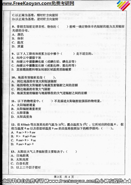 相关话题/考研真题 中山大学 大气 基础 科学