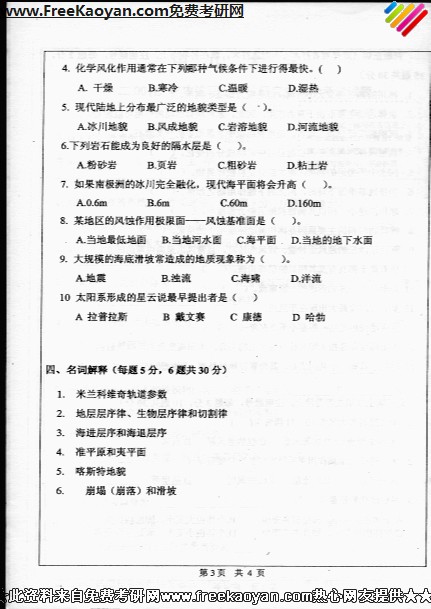 中山大学2007年考研真题-地质学基础(一)(外动力地质)(3)