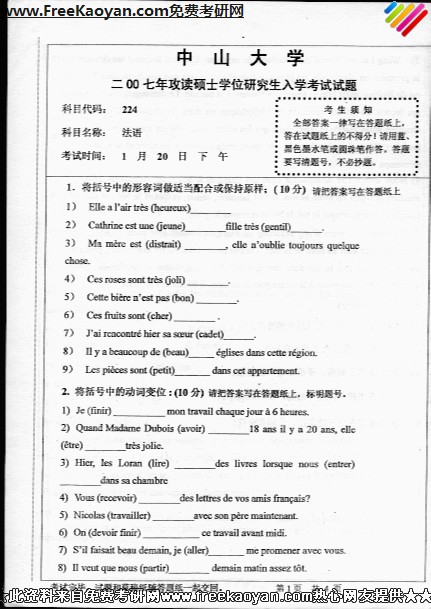 专业课考研经验 本站小编 FreeKaoyan 2018-01-23中山大学2007年考研真题-德语