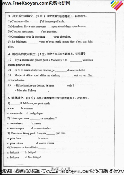 中山大学2007年考研真题-法语(2)