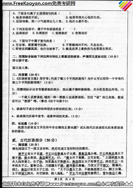 相关话题/考研真题 中山大学 基础 汉语言文字学