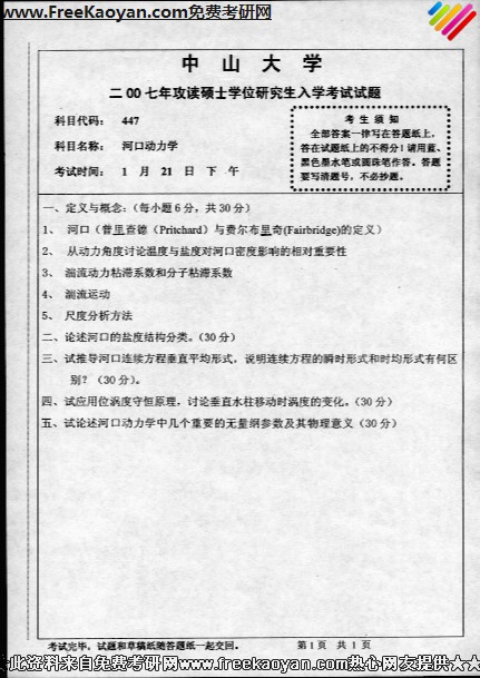 专业课考研经验 本站小编 FreeKaoyan 2018-01-23中山大学2007年考研真题-工程热力学