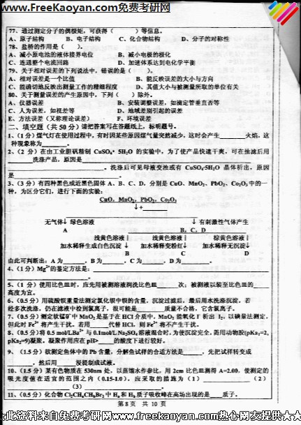 中山大学2007年考研真题-化学实验与技术(8)