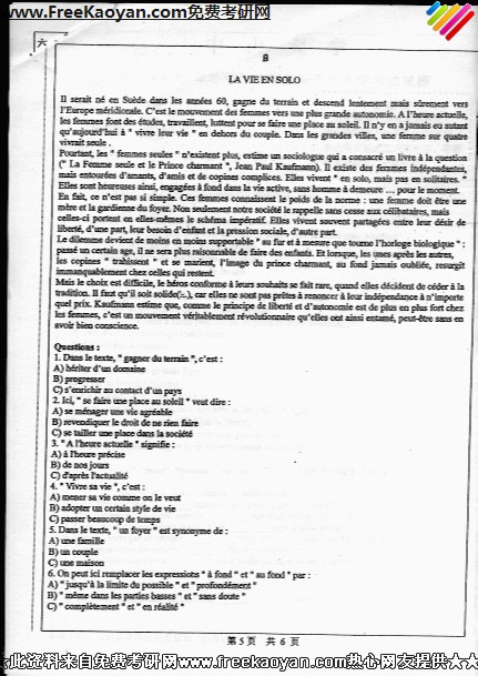 专业课考研经验 本站小编 FreeKaoyan 2018-01-23中山大学2007年考研真题-基础德语