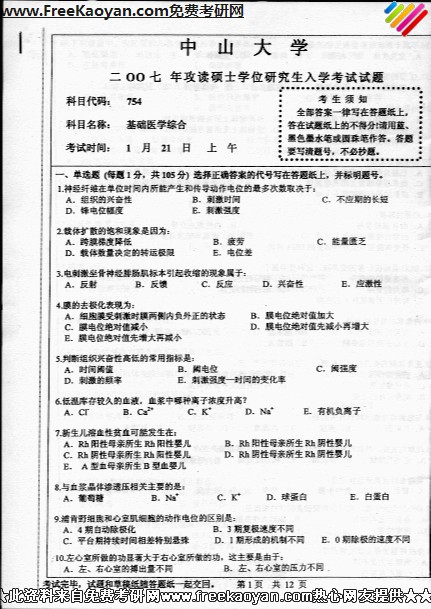 专业课考研经验 本站小编 FreeKaoyan 2018-01-23中山大学2007年考研真题-化学实验与技术